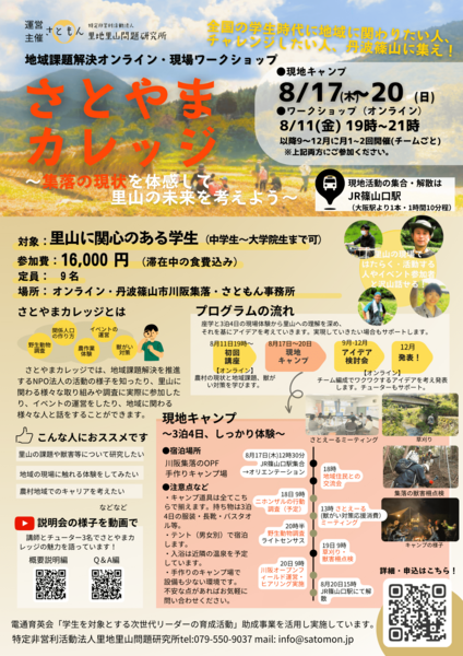 さともんが“中学生~大学院生向け“に、地域課題解決・里山を学ぶプログラムを実施します!
