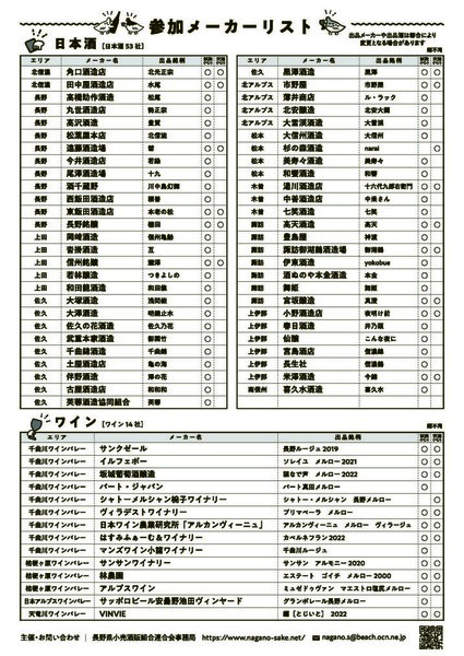 - 長野県の日本酒・ワインをPRするイベントです!酒蔵との交流や試飲も出来ます
