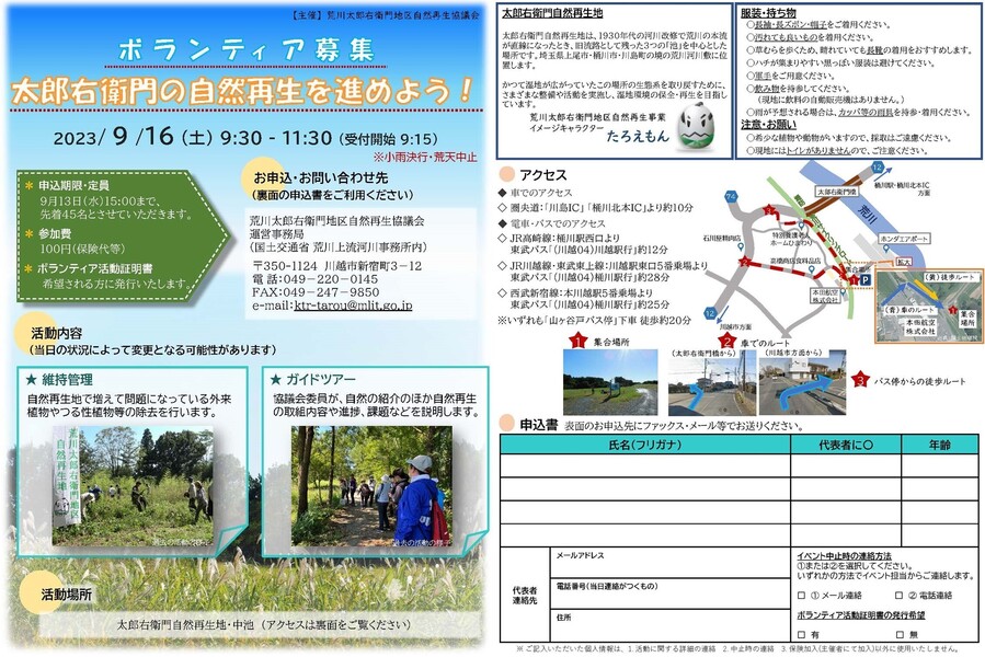 - ボランティア募集「太郎右衛門の自然再生を進めよう!」
