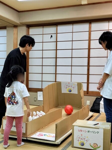 食後には、みんなが楽しめるレクリエーションを開催! 射的、ワニワニパニック、カップインボールといった定番ゲームに加えて、夏休み特別企画としてスーパーボールすくいも登場しました。