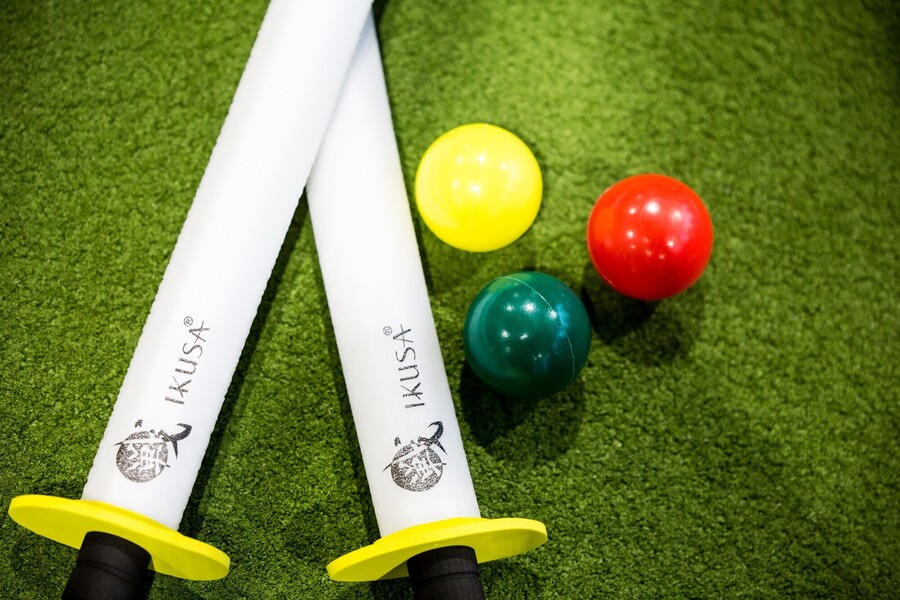 スポンジ製の刀を持ち反対の腕についた命と呼ばれるボールを落とし合います。