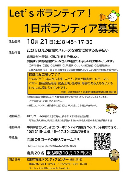 この募集の受入法人「京都市福祉ボランティアセンター」をフォローして、