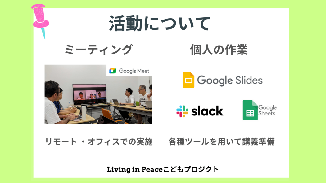 ■ Living in Peace こどもプロジェクトに入会して、活動開始