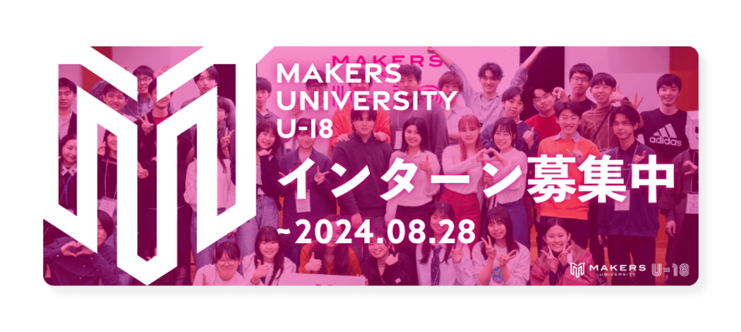 インターンシップでは、高校生という枠を越えて挑戦するU-18世代が集う私塾「MAKERS UNIVERSITY U-18」を形にする中心的な役割を担っていただきます。