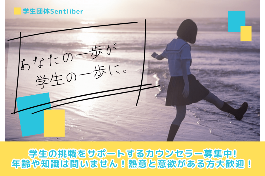学生団体Sentliberでは運営メンバーとして団体に所属する学生のメンタルケアやサポートを積極的に行い、学生が自己実現を出来るように応援してくださる社会人・学生カウンセラーを募集しています!