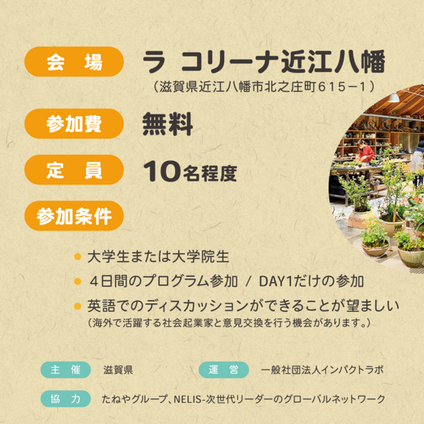 - 【滋賀】\農業×ビジネスを生み出す4日間/社会的課題解決CHALLENGE