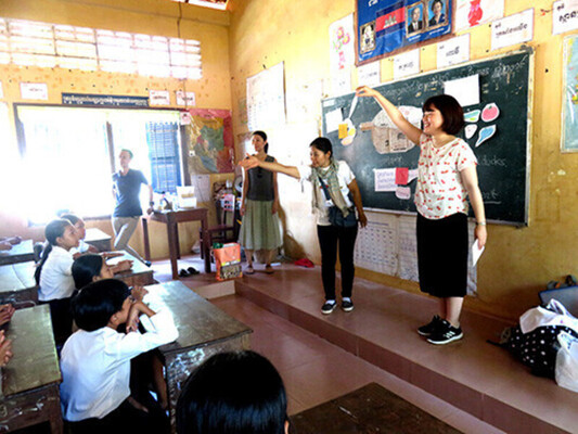 ・カンボジアの小学校を訪問し、栄養授業のアシスタント