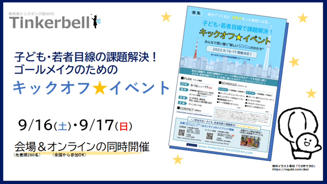 ティンカーベルは、主に小・中学生の子どもたちの学習・生活・成長がより豊かになるように、その実現のための調査研究・実践・政策提言を通し、活動をしていきます。自信があってもなくても、子どもたちがもっと可能性を高められるように。何をすればいいか考えていく団体として、立ち上げます。