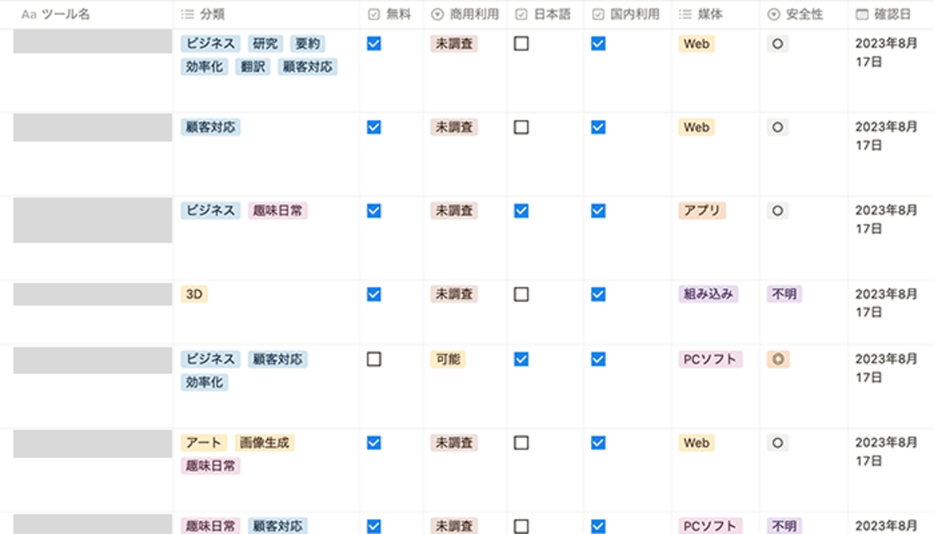 ・ 共有される「ツール名+URL」をNotionで確認し、分類・タグ付け