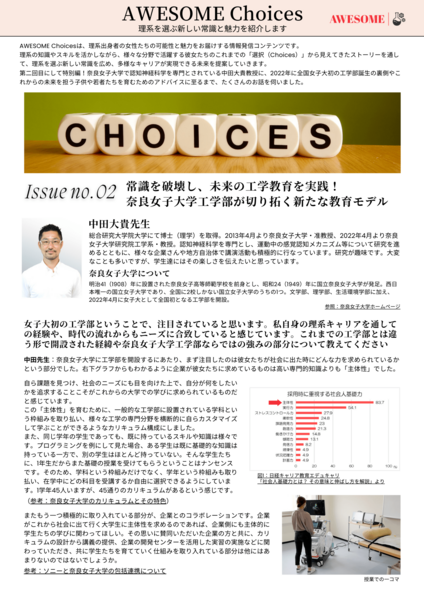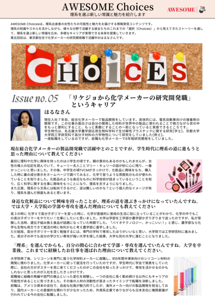 ●AWESOME Choices:様々な分野で活躍する理系女性の選択に特化したキャリアストーリの発信