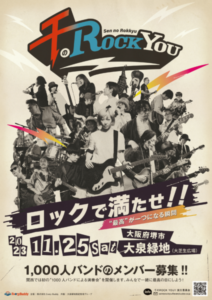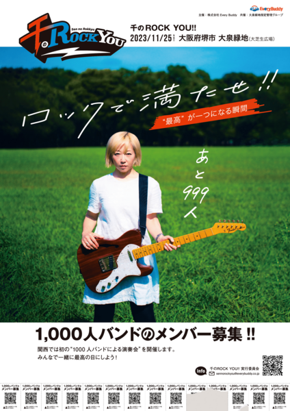 大阪府堺市で同じ楽曲をライブ演奏するために1,000人のバンドメンバーを募集し、当日にみんなで‟せーの“で演奏する野外ライブイベントです!皆様の誘導や警備などを行っていただき最高の瞬間を共有しよう!