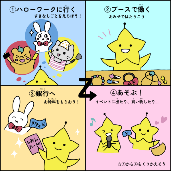 そんな子どものまちは、ズバリ「大人口出し禁止!」。まちのなかで起こった問題は、子どもたちが解決します。危険がなければ、大人から見れば「それってどうなの?」と思っても我慢!大人も子どもも困ったことがあれば、まちにある「警察」や「市役所」に聞いてみよう。