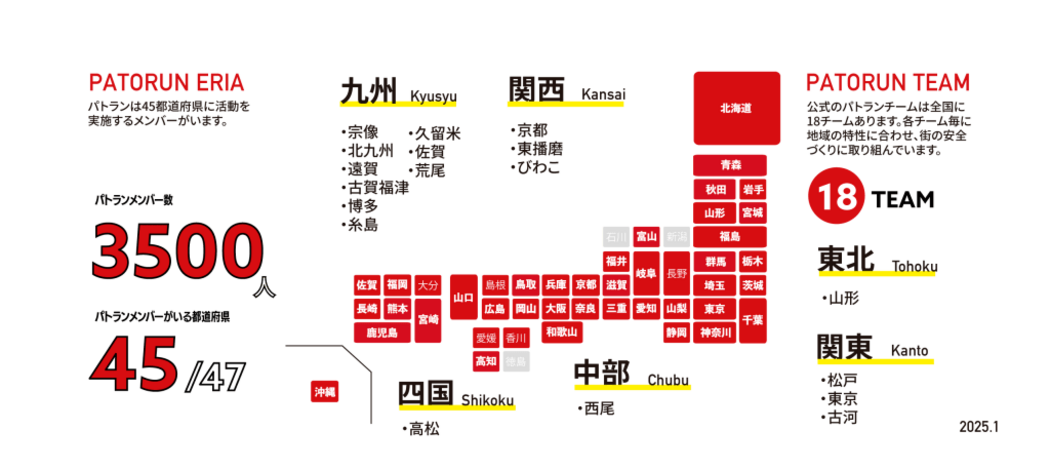 パトランの活動は2013年1月に福岡県宗像市でスタートし、2025年1月時点までで45都道府県までに広がっています。