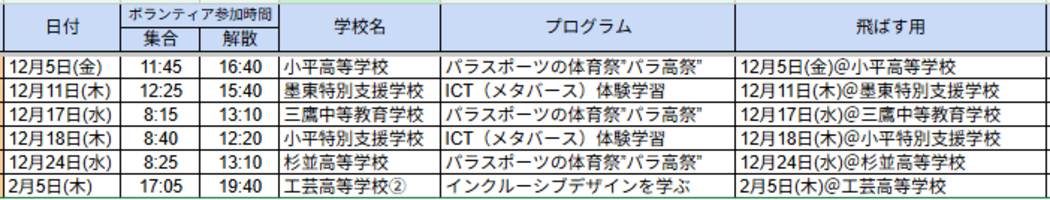 2024年度から開始された都立高校全校に対してインクルーシブ体験を届けるプログラムが始まり、弊団体から以下の3つのプログラムを提供する予定です。