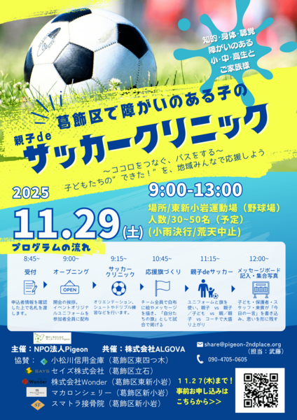 募集詳細|葛飾区 障がい児サッカークリニック(11/29 土)