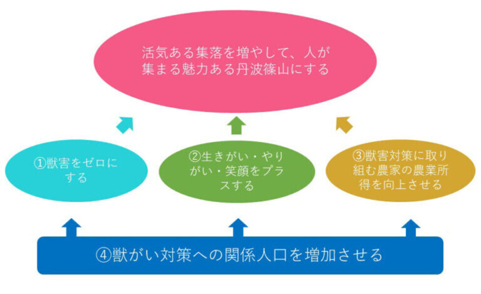 丹波篠山市では、人口減少・高齢化の進行する集落に対し、野生動物による農作物被害軽減(以下、「鳥獣被害」という。)のための確実な技術や方法を普及して、鳥獣被害に強い集落づくりを進めながら、多様な人材の参画を促し、地域を元気にする「獣がい対策」の推進を目指している。市内を拠点として「獣がい対策」の推進活動を行う特定非営利活動法人里地里山問題研究所と連携し、以下の業務を行う獣がい対策支援員を募集する。