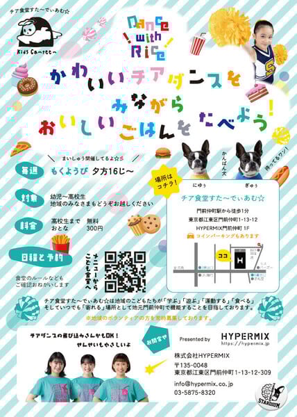 【第2章】"チアダンススクール"から始まり"こどもの居場所(キッズスクール&こども食堂)"へ進化!地元の子供たちにいっぱいの元気をもらっていると...我々としてもっと何かできないか考えるようになりました!さまざまな人に会いアドバイスをいただくうちに「こども食堂」をスタートする場所に適していると思うようになりました!「キッズスクール」に「こども食堂」を加えることによって江東区、門前仲町という地域に貢献していこう!と進化していきました!