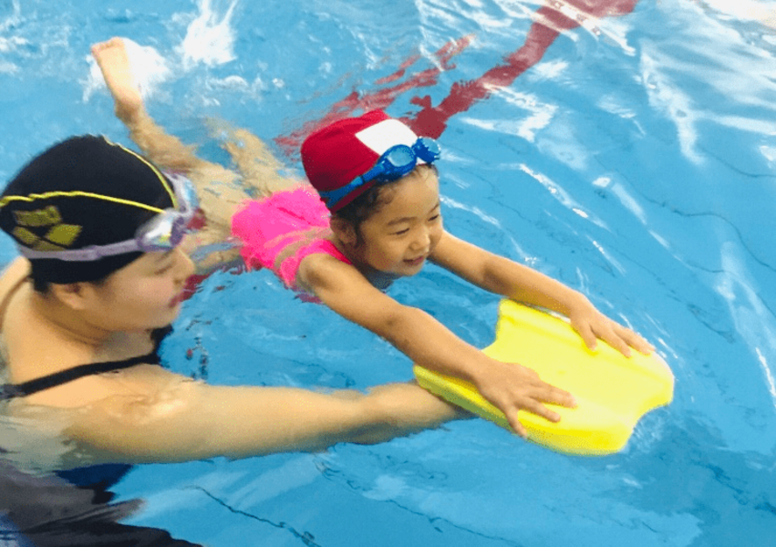 ・泳ぐことにより、集中力の向上、集団に慣れる、協調性、挑戦心、自信を育むこと、心のリラックス、体力向上、心肺機能向上を図れるため