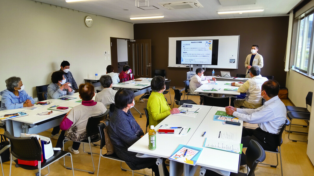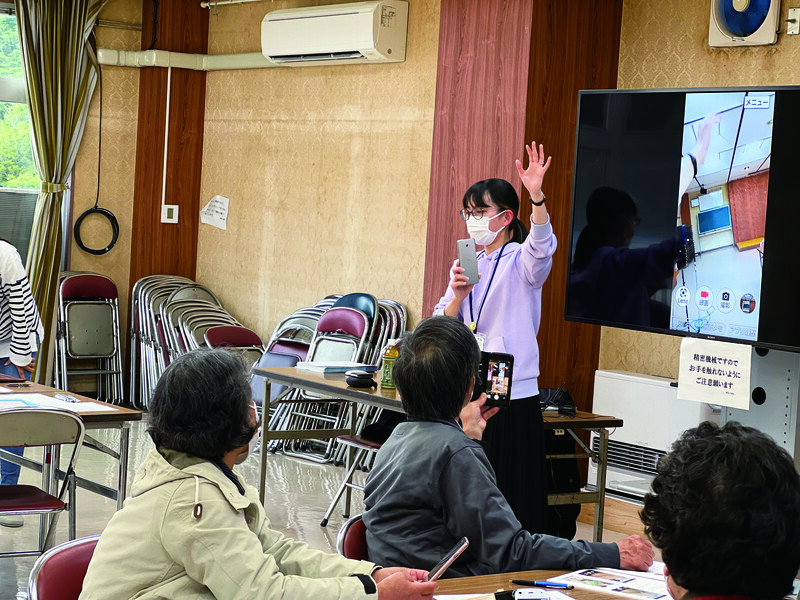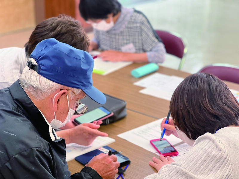 スマートフォン講座を各地域と連携をしながら企画及び実施をしています。内容としては、スマートフォンの端末説明、インターネット、カメラ等の基本的な知識と操作、マイナンバーを含めた行政手続きに関わる講座を2時間前後で行っています。経験豊富な講師と参加者4名につき支援員1名を派遣しています(例:参加者20名の場合は講師1名と支援員4名)。