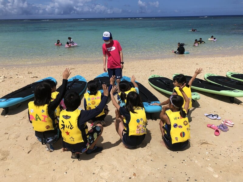 【自然体験】子ども達にカヌーやSUPの実技指導を行う場面もあります。