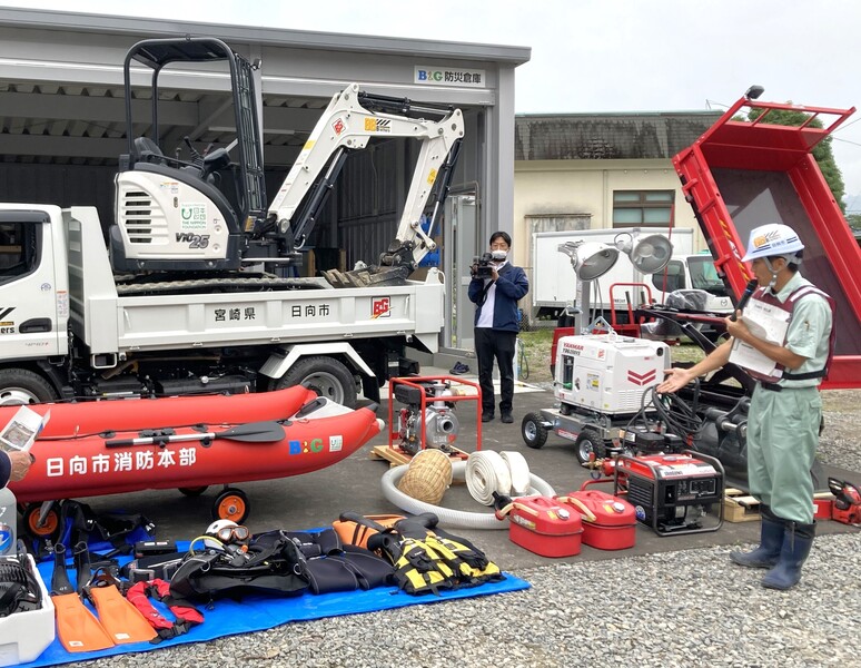 【防災】全国の自治体に防災備品や重機(油圧ショベル、救助艇)を配備。