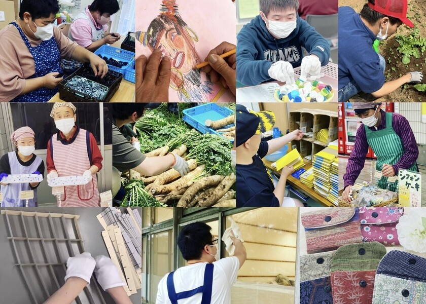 段ボール組立、キャップ分別、手帳の解体、ランチ(盛り付け・接客・食器洗い)、陶芸、自主製品作り、