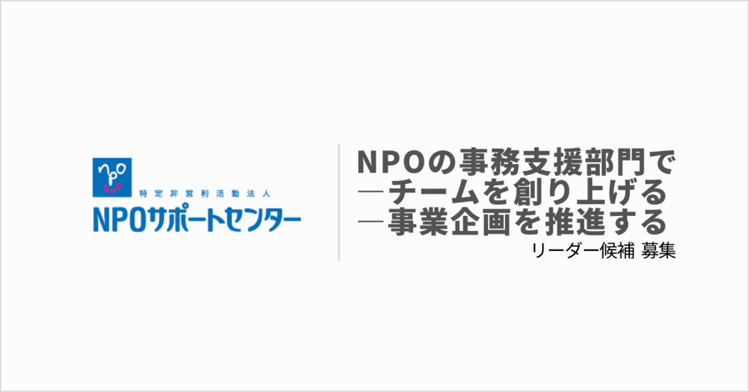 - 【リーダー募集】バックオフィスから社会課題解決を促進する│NPOの事務支援部門