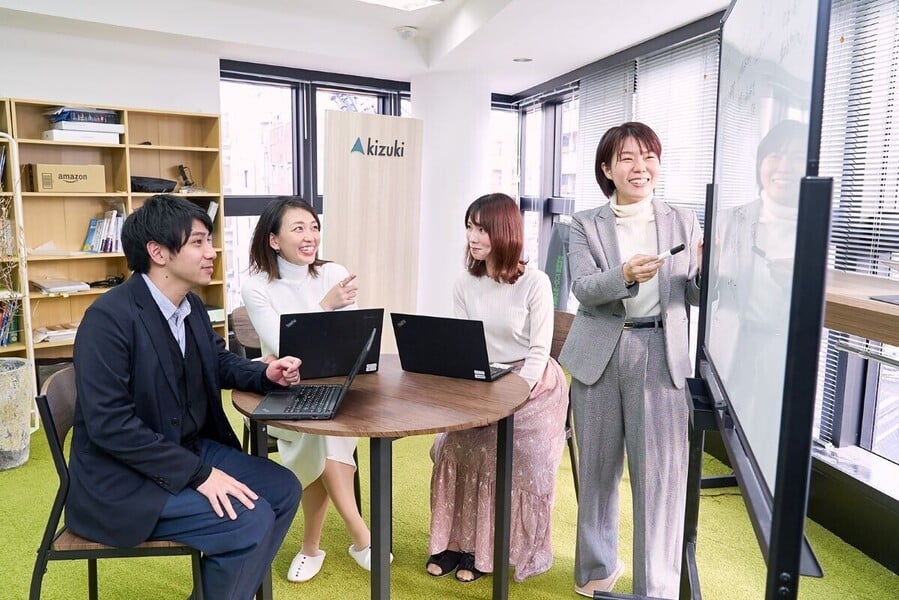 キズキの人事部は 「採用」「人事企画・総務」「労務」の3つのグループで構成されています。それぞれのグループが連携し、一気通貫して社員が働きやすい職場環境をつくっています。 採用グループのメンバー構成は、 人事部長1名、マネージャー1名、 スタッフ1名、業務委託1名の計4名で行っています。