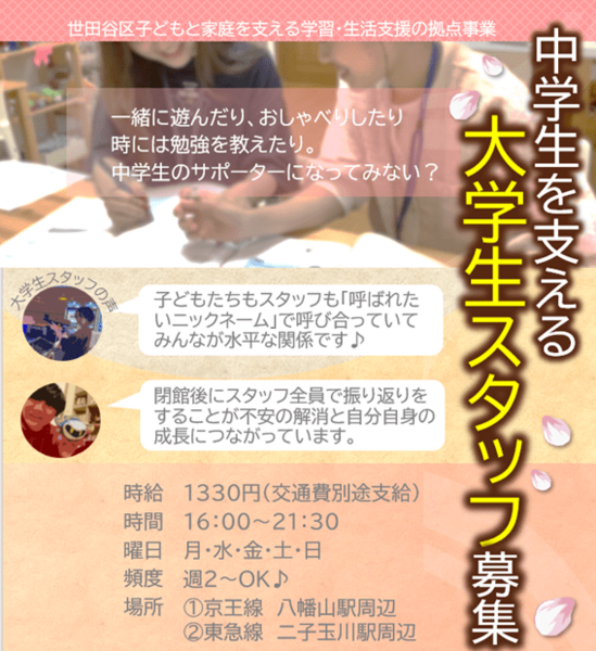 - 【時給1460円】大学1・2年生世代限定!~中学生を支える学習・生活支援事業~