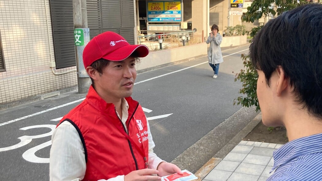 セーブ・ザ・チルドレンの公式スタッフとして駅前やショッピングモールなどに立ち、通行されている方々へ日本国内、開発途上国の貧困で苦しんでいる子どもたちの現状やセーブ・ザ・チルドレンの活動内容をお伝えし、子どもたちを支える継続寄付のご提案、受付をするお仕事です。