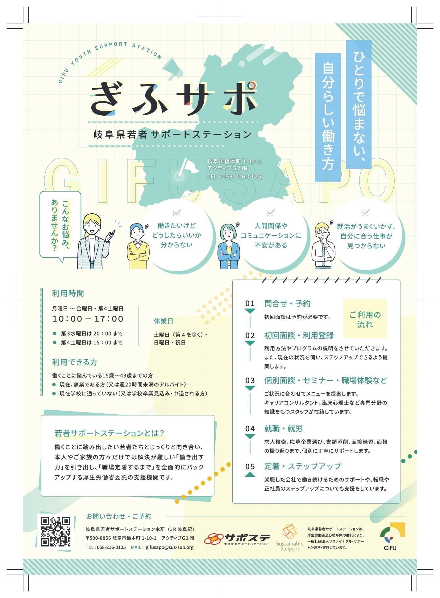 令和7年4月1日より岐阜県若者サポートステーションの運営団体が 「一般社団法人サスティナブル・サポート」に 変更となります。