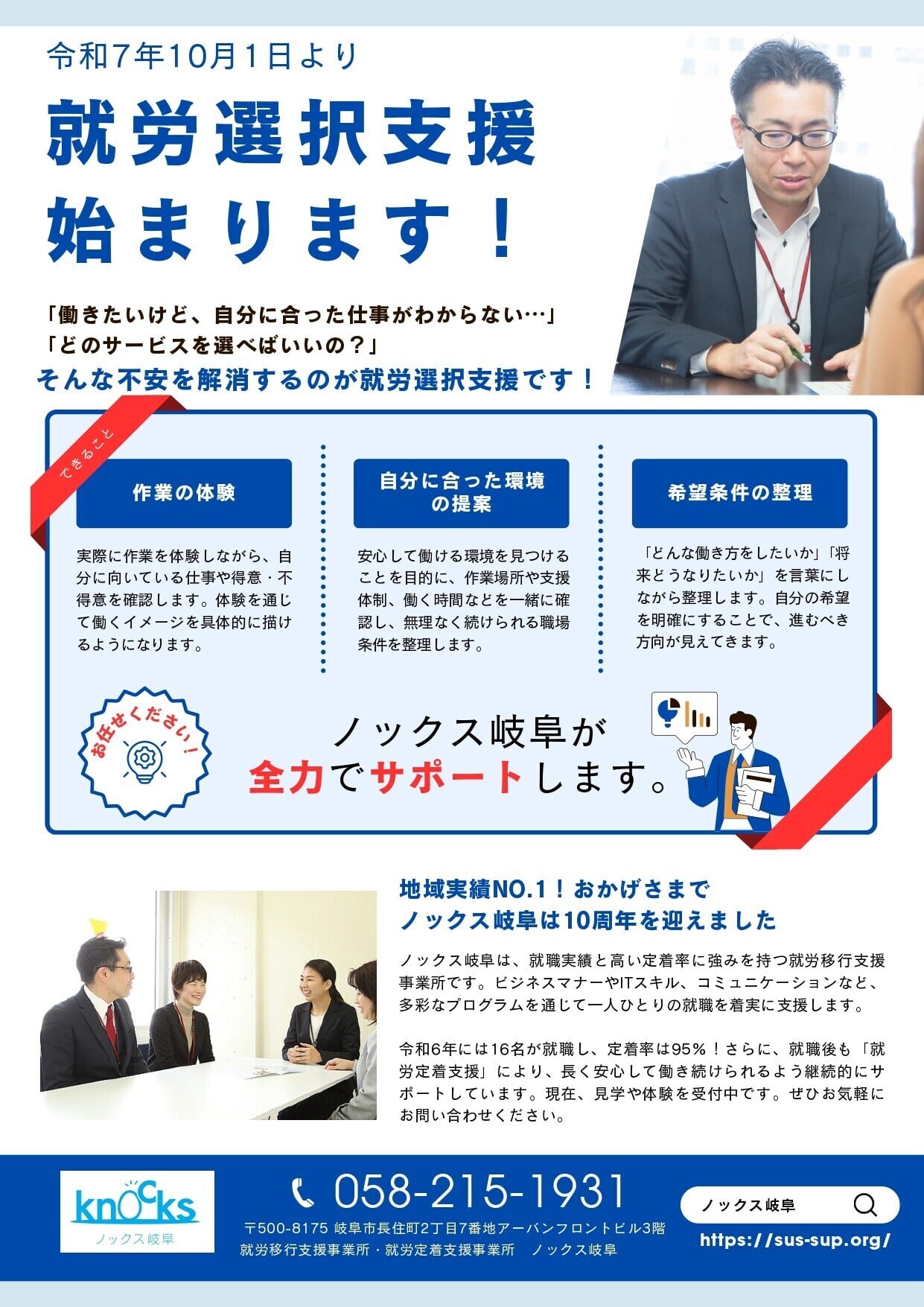 就労移行支援事業所ノックス岐阜は「就労選択支援事業」を新たに開始いたします。