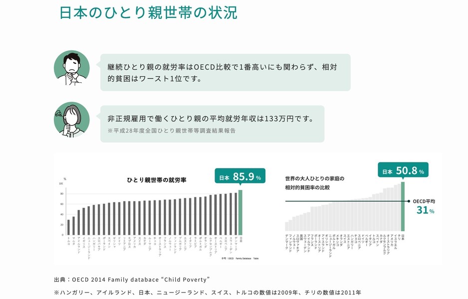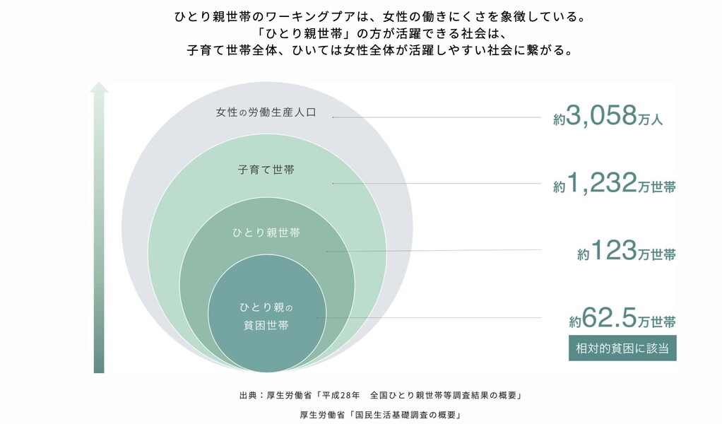 「子育て」と「収入」を両立できる働き方で、日本のひとり親世帯のワーキングプアを改善する。
