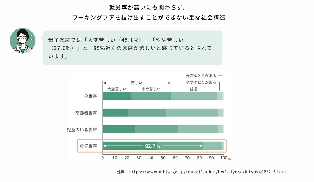 「子育て」と「収入」を両立できる働き方で、 日本のひとり親世帯のワーキングプアを改善する。