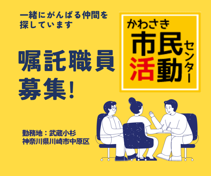 - 公益財団法人かわさき市民活動センター市民活動支援の職員(常勤嘱託)募集