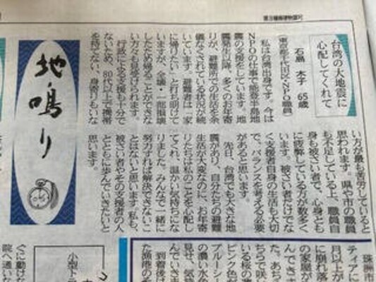 突然の地震でしたので、多くの人は命からがら、着の身着のまま避難するのが精いっぱいです。老眼鏡を携えて避難された方、ご自宅から幸いに老眼鏡を持ち出せた方はごく一部です。落ち着いて新聞を読もうと思っても、老眼鏡がなく非常に不自由を感じているところでしたので、多くの方には大変喜んでいただくことができました。また、これまで老眼鏡を使ったことがない方にもお勧めしたところ、「びっくりするくらいよく見える」とのお声をいただきました。