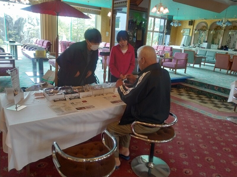 今回老眼鏡の配布をする中で気が付いたことは、ご高齢者の多くは、老眼とは別に、白内障や網膜剥離など目に支障がある方も多く、避難中も継続的な治療のフォローが必要ではないかとも感じました。耳が不自由な方も多く、コミュニケーションをとるのが大変な方もいらっしゃいましたが、全国から集まってきている介護スタッフの方が、親身に、きめ細かく対応されていることも非常に頭の下がる光景でした。