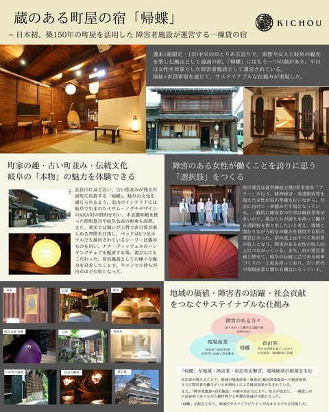 岐阜提灯や和傘などの伝統工芸品の制作や週末には一棟貸の宿【帰蝶】を運営します。