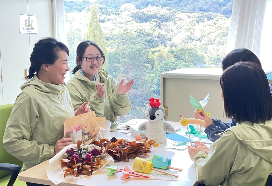 当施設は、子どもたちに安心して過ごしてもらい、創作活動を通じて、多くの人とふれあい、豊かな個性や温かい心を育むお手伝いをしています。
