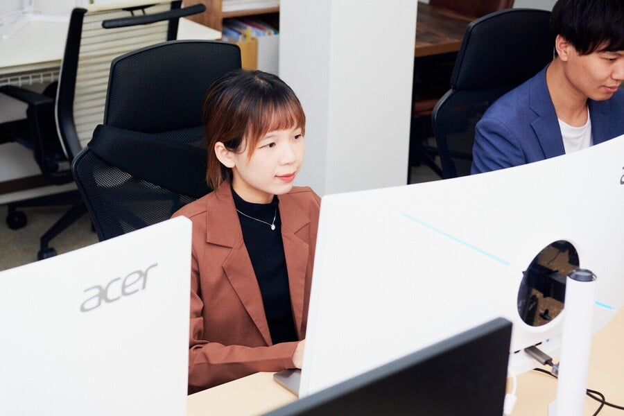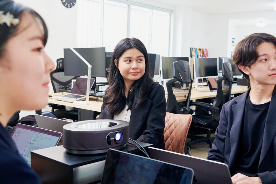 出社をメインとしており、オフィスには日本人のみならず多くの外国人の方がいます。社内では、日本語以外の言語が飛び交う場面も。海外旅行に来た気分で働ける環境があります。