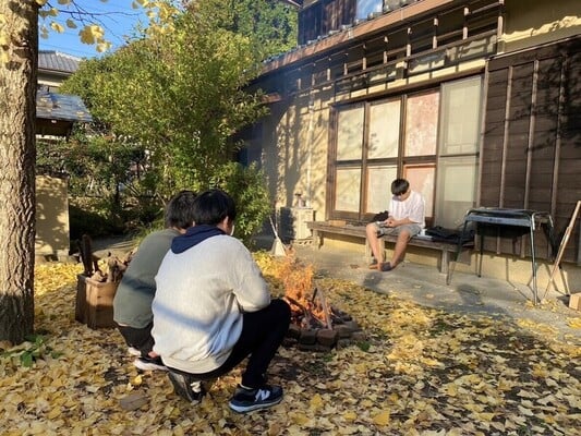 外で焚き火をしたり、窯でピザを焼いたりする日もあります。