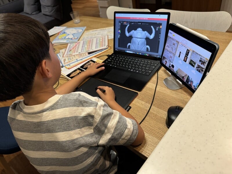 小学1年生から、プロが使う本格的なパソコンとペンタブレットで3DCG制作や、3Dプリンターでのモノづくりをしていきます。