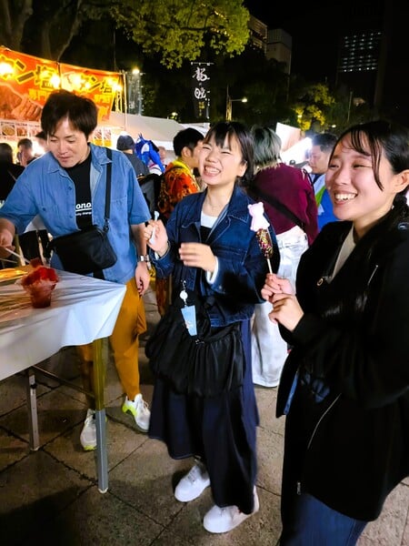 お仕事終わりに、近くでやっていたお祭りにみんなで行ったり♪