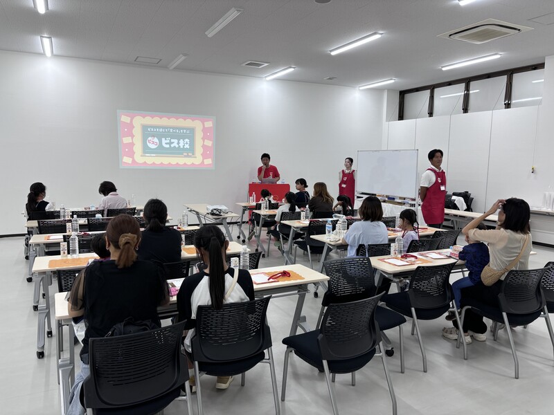 お菓子の「ビスコ」を使った食育講座「ビス校」を開催しました。