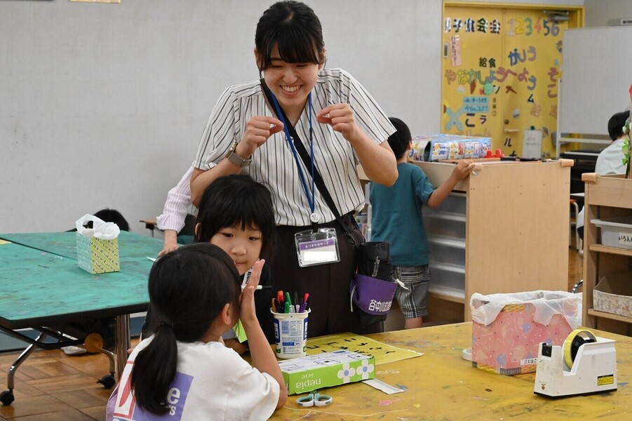 中高生のとき、地元のサッカークラブで子どもと触れ合っていて、子どもが好きだなと思ったし、長期的に関係を築いていく仕事に興味をもち、応募しました。