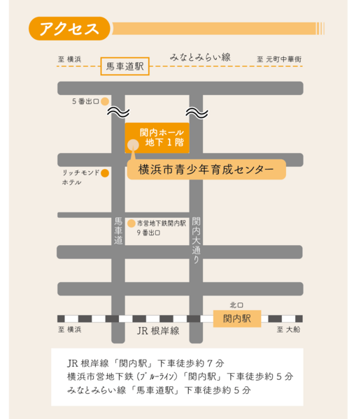 〒231-8454 横浜市中区住吉町4-42-1 関内ホール地下1階