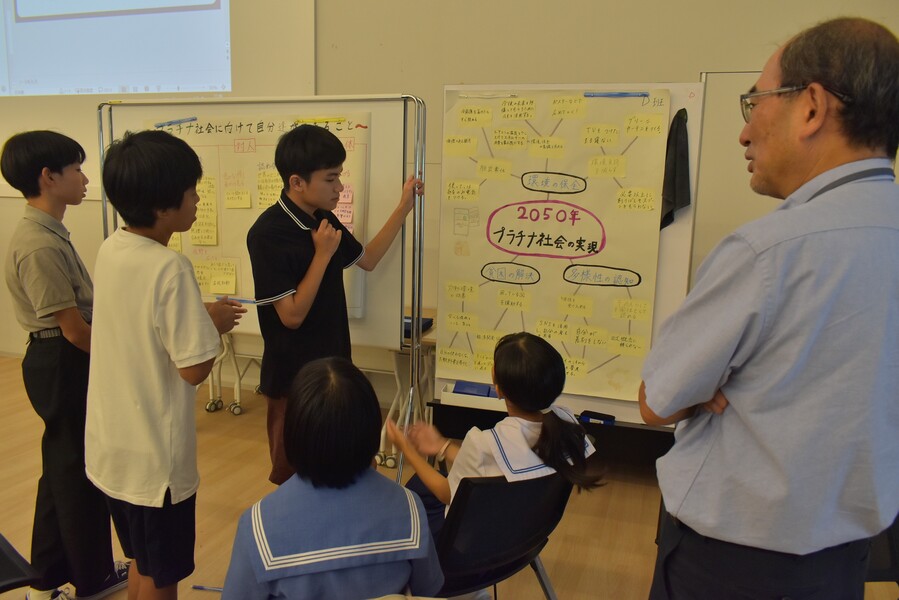 中学生に未来の社会と自分について各講義とワークショップを織り交ぜながら考え、意見交換してもらい、最終日には各グループごとに発表していただきます。