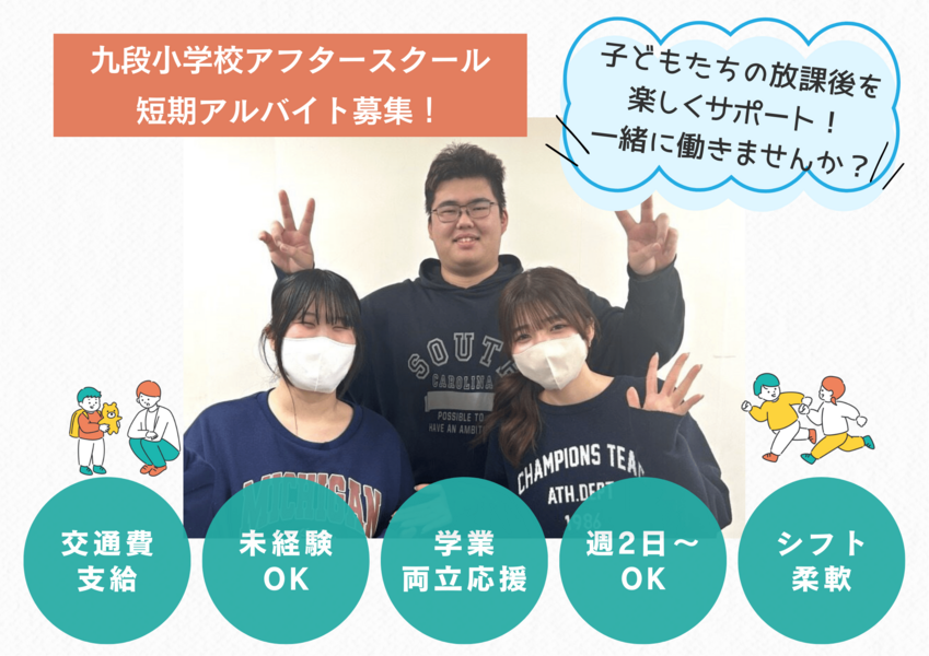 ≪短期学童スタッフ≫学生歓迎!小学生の放課後をサポート!未経験OK◎週2×4h~