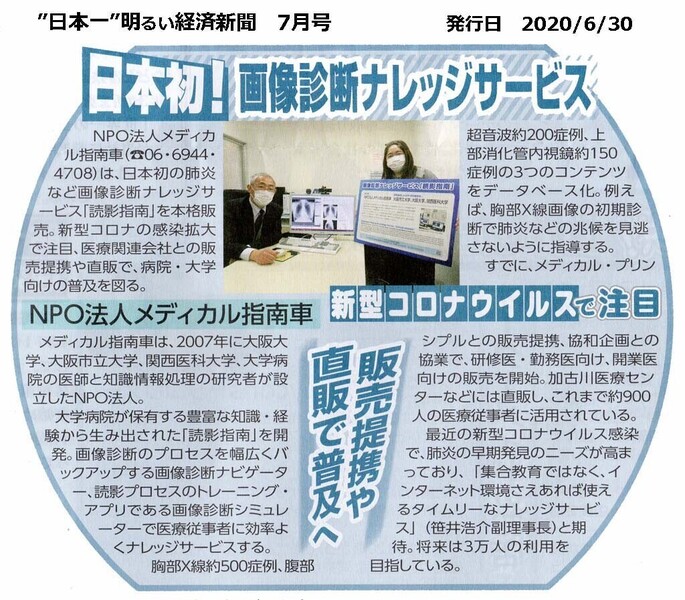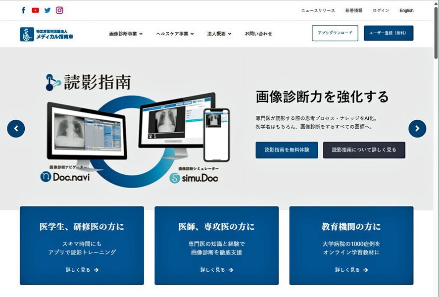 メディカル指南車は「専門医」が画像診断を解説する"画像診断オンライン講座"を公開して、国の事業再構築補助事業や大阪市市民活動推進助成事業に選ばれています。また大学病院の知識・経験や症例をコンピュータ(AI)に教え込みオンラインで提供する"画像診断ナレッジサービス"の開発に成功!兵庫県立加古川医療センターでの「臨床研修」や鈴鹿医療科学大学等での診療放射線技師教育に利用されています。このサービスは総務省2021年度異能vation企業特別賞に選ばれました。我々のサービスは医療の「ばらつき」を補完する力があります。