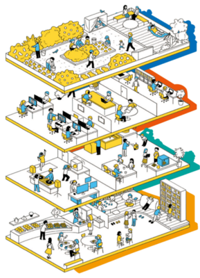 2−3階に3Dプリンターやレーザーカッター、録画・配信用設備など、それぞれの興味を突き詰められるデジタル機材を揃えています。